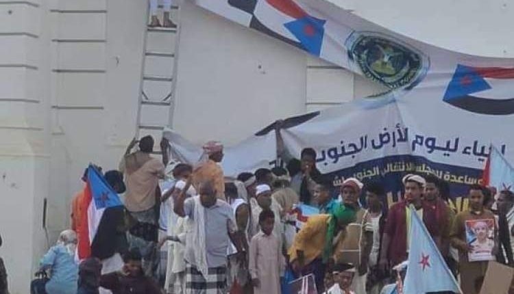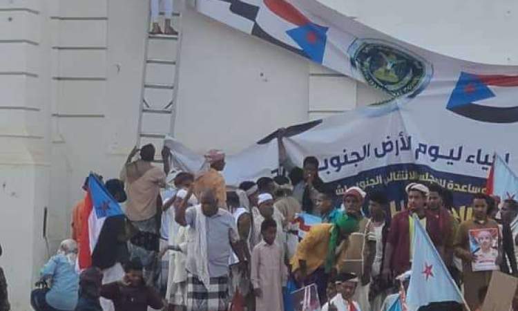 واطلق المسلحون النار ما ادى الى حالة من الفوضى فيما قام مسلحون بتمزيق لافتات الإنتقالي .