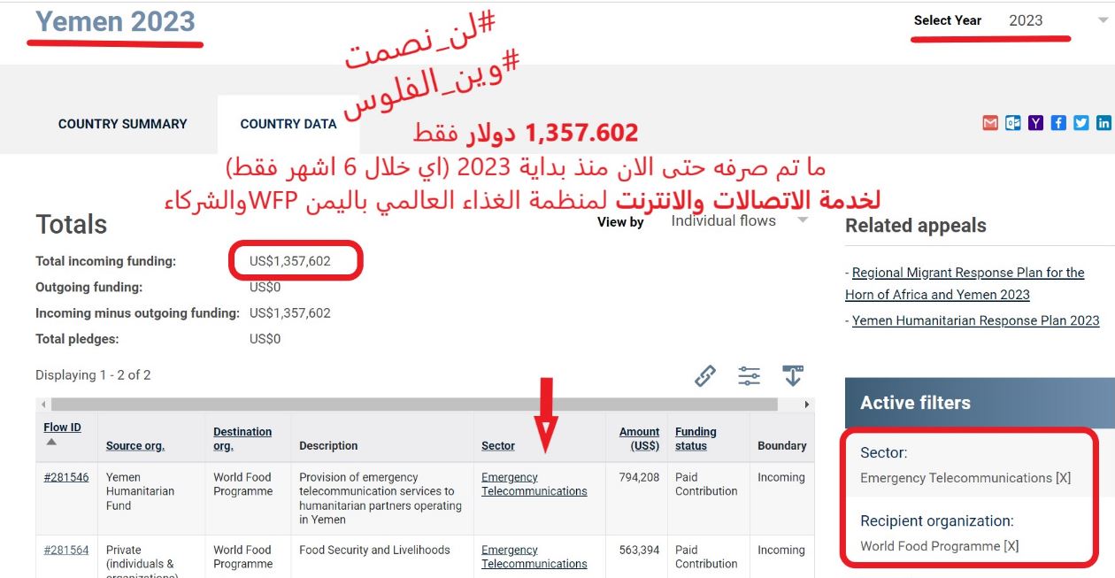 ونشر ناشطون وثيقة صادرة عن الامم المتحدة تبين انفاق مبلغ 1.357.602 دولار لخدمة الاتصالات والانترنت الخاصة ببرنامج الأغذية العالمي خلال 7 أشهر منذ بداية العام الجاري.