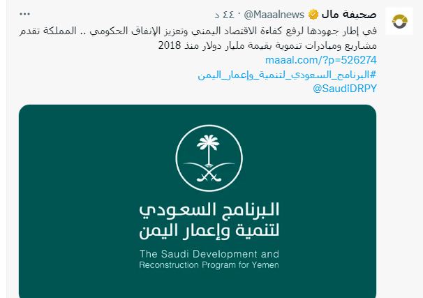 وأفادت صحيفة “مال” السعودية، بأن وديعة المليار دولار تم انفاقها من قبل البرنامج السعودي منذ العام 2018 لتعزيز كفاءة الاقتصاد اليمني والانفاق الحكومي، موضحة بان تلك المبالغ تم صرفها على مشاريع ومبادرات للبرنامج السعودي.