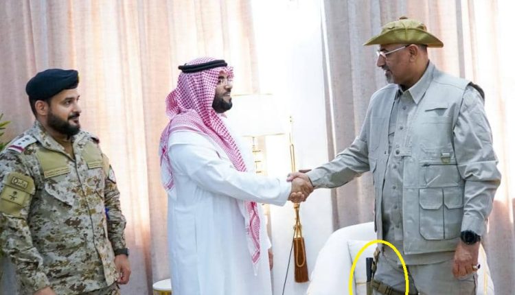 ظهر رئيسُ “المجلس الانتقالي الجنوبي” عيدروس الزبيدي التابع للإمارات مدجَّجًا بالسلاح أثناء لقائه الوفد العسكري السعوديّ مطلع الأسبوع الجاري في مدينة عدن الخاضعة لسيطرة فصائل التحالف.