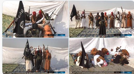 ونشر التنظيم صور لعناصره خلال قيامهم بمبايعة الزعيم الجديد للتنظيم ابي حفص الهاشمي ..