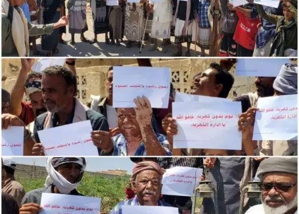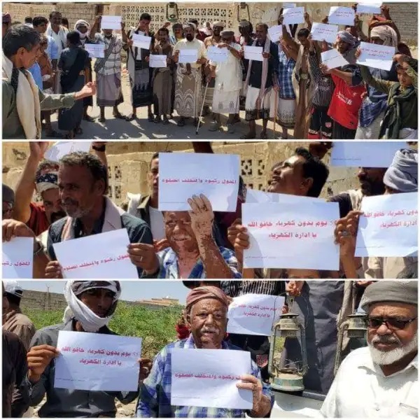 وخرج أبناء مديرية نصاب، غربي مدينة عتق، في تظاهرة، احتجاجاً على استمرار انقطاع التيار الكهربائي.