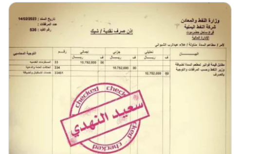 واخر تلك الوثائق فاتورة غداء لوزير النفط في حكومة معين الشماسي من احد مطاعم المكلا وقد وصلت قيمتها إلى نحو 11 مليون ريال.
