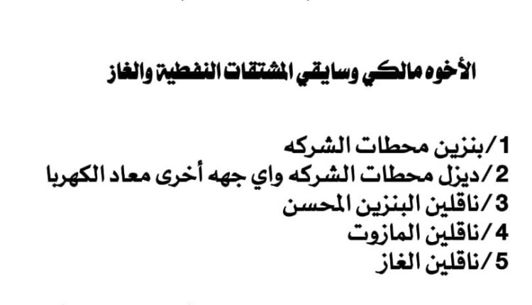 وأصدر مكون “أحرار مأرب” تعميماً يبدأ تنفيذه من اليوم الأربعاء، حيث قرر المكون “إيقاف كافة عمليات نقل المشتقات النفطيه من غاز وبترول وديزل لكل الجهات عدا محطات الكهرباء”، وذلك للضغط على شركة النفط والغاز لإلغاء الجرعة المفروضة على الديزل والغاز في مأرب.