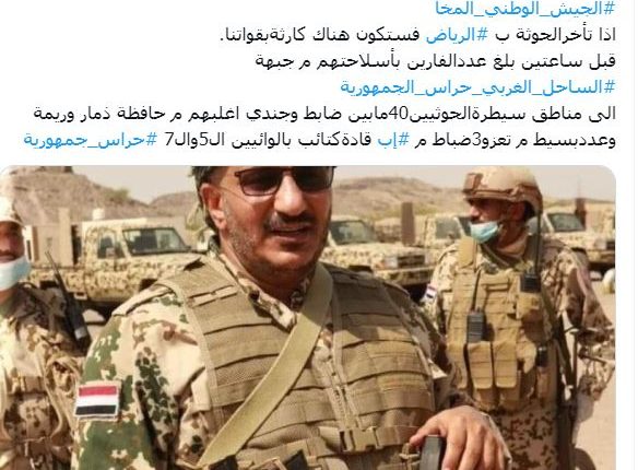 ومع أن  انسحاب  مقاتلي الفصائل الموالية للإمارات بالساحل الغربي  ظلت عناوين  بارزة  خلال الفترة الماضية الا ان وتيرة الانسحابات بتسجيل نحو 40 حالة في غضون ساعتين  تطور لافت ومؤشر على قناعة تلك الفصائل بعدم جدوى الاستمرار في تلك المنطقة  خصوصا في ظل التحشيد الامارات  لصراع جديد مع السعودية سيكونون هم وقوده القادمين.