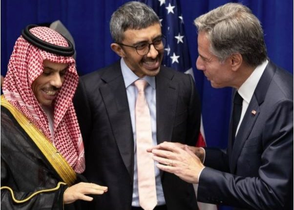 عقد وزير الخارجية الأمريكي انتوني بلينكن اجتماعا مع نظيريه السعودي فيصل بن فرحان والإماراتي عبد الله بن زايد ، بعد إنتهاء مفاوضات الرياض وعود وفد صنعاء مع الوسيط العماني إلى العاصمة اليمنية .