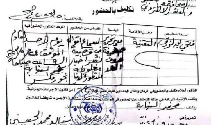 استدعت نيابة الصحافة المطبوعات في مدينة عدن الخاضعة لسيطرة قوات الانتقالي المدعومة إماراتيا، رئيس تحرير صحيفة وموقع عدن الغد الصحافي فتحي بن لزرق .