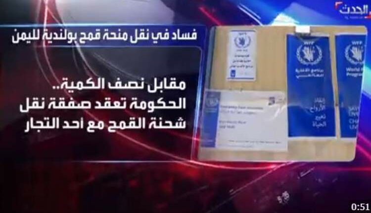 أبرزت قناة “الحدث” السعودية فضيحة فساد تورطت فيها حكومة معين عبدالملك، والتي تتعلق ببيع نصف منحة القمح البولندية في صفقة غير شرعية حيث تصل قيمتها إلى 20 مليون دولار.