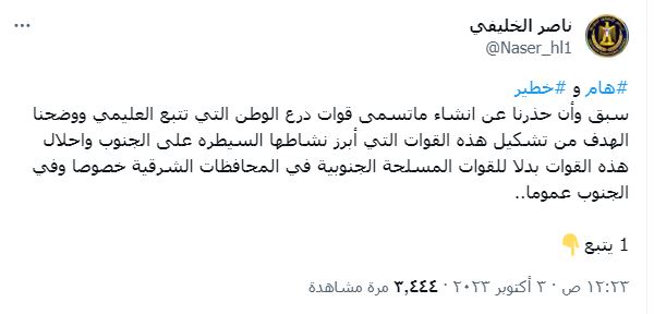واعتبر الخليفي استئناف التجنيد بمثابة استكمال لما بدواه في عملية تفكيك القوات الجنوبية وحصارها قبل الانقضاض عليها، داعيا قيادات الانتقالي لاتخاذ قرار الحسم قبل ان تجد نفسها خارج المعادلة.