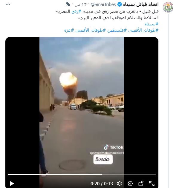 واظهرت مقاطع فيديو تداولها ناشطين مصريين غارات إسرائيلية بالقرب من مركز الحدود بين غزة ومصر.
