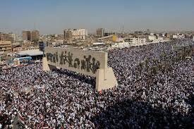 في بغداد، ورفع المتظاهرون الأعلام العراقية والفلسطينية، وصور زعيم «التيار الصدري»، مقتدى الصدر، الذي دعا إلى هذه التظاهرة، مردّدين عبارة «كلا كلا للاحتلال؛ و«كلا كلا أمريكا»، فيما رُسم علم ضخم للاحتلال على الأرض، ليدوس عليه المتظاهرون.