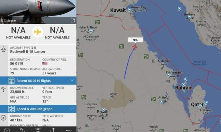 مؤكدا انه ” تم رصد طائرة KC-135 تحلق في سماء الرياض لتنفيذ مهمة التزويد بالوقود ثم اتجهت شمالا “.