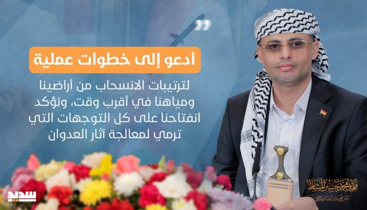 ودعا المشاط التحالف إلى جدولة الخطوات التنفيذية والبدء في معالجة ملف الأسرى ومرتبات الموظفين ومعاشات المتقاعدين ورفع القيود عن الموانئ، كما دعا إلى خطوات عملية لترتيبات الانسحاب من الأراضي والمياه اليمنية في أقرب وقت.