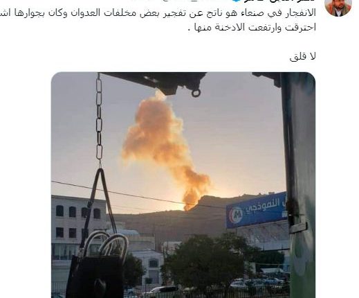 ورد الآن : معلومات جديدة تكشف تفاصيل الانفجار الذي وقع في صنعاء عصر اليوم