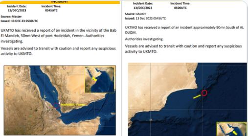 والهجوم الجديد يعد الثاني خلال ساعات، حَيثُ كشفت الهيئة ذاتها عن تسجيل حادث يتوقع أنه هجومٌ في باب المندب.