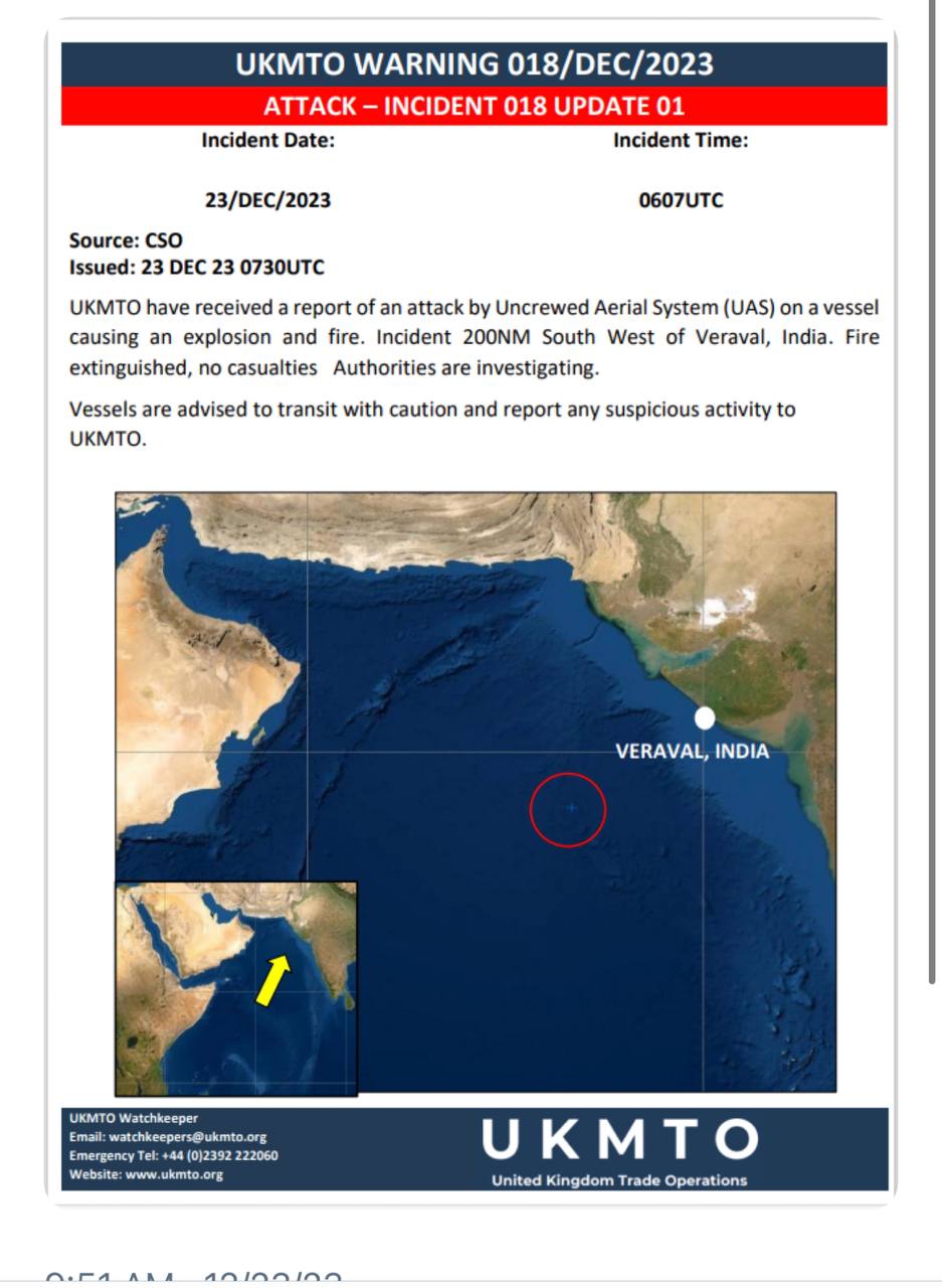 كشفت شركة أمبري البريطانية للأمن للبحري، عن هجوم جديد استهدف سفينة إسرائيلية في المحيط الهندي.