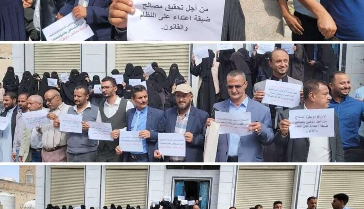 ونظم العشرات من ممثلي منظمات المجتمع المدني والناشطين، وقفة احتجاجية منددة باقتحام نجل قائد الشرطة العسكرية في مدينة تعز، مقر مؤسسة “رسالتي لتنمية المرأة”، واعتدائه على موظفيها واختطافه أحدهم.