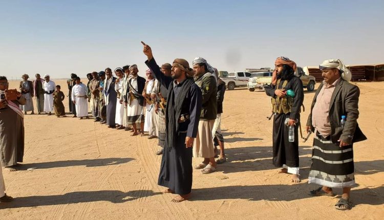 واحتشد الآلاف من أبناء القبائل إلى مخيم الاعتصام قرب قطاع العقلة النفطي بمديرية عرماء، في محافظة شبوة، للمطالبة بخفض أسعار الوقود.