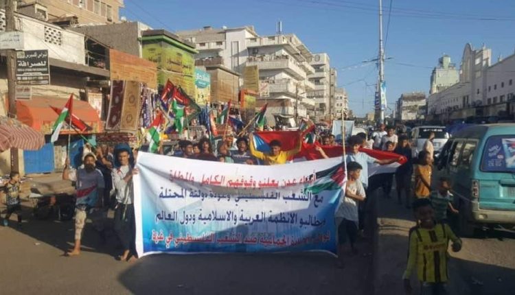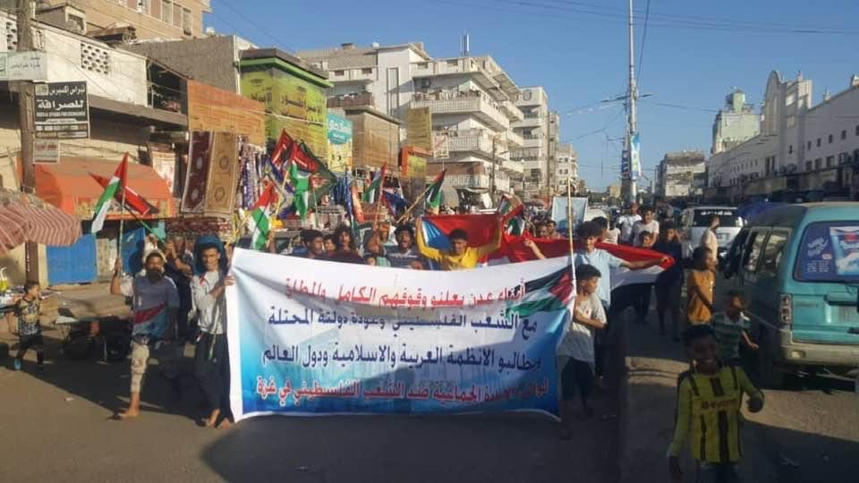 وأكد المشاركون في التظاهرة من أبناء عدن وقوفهم المطلق مع الشعب الفلسطيني، مطالبين الشعوب العربية مناصرة الشعب الفلسطيني في غزة الذي يتعرض لمجازر الإبادة الجماعية من قبل الكيان الصهيوني.