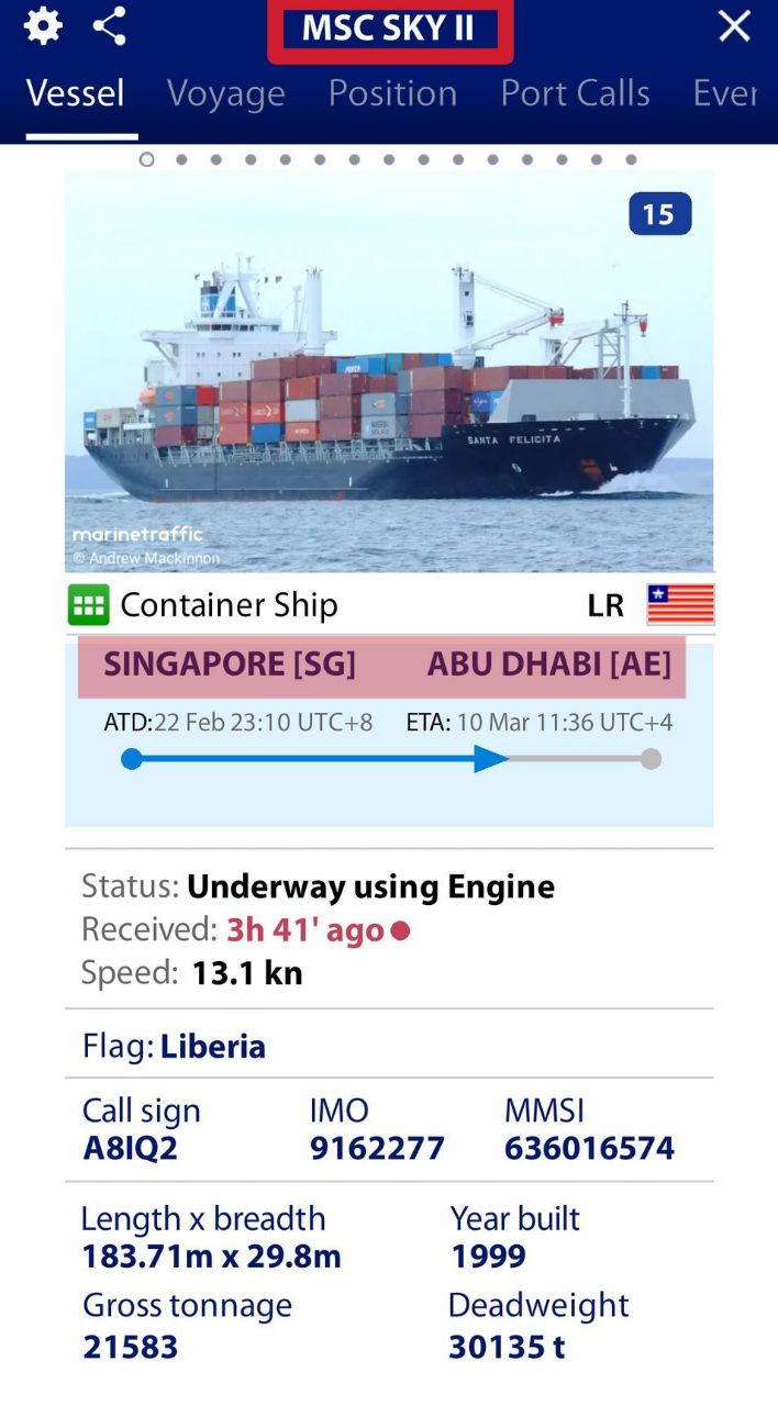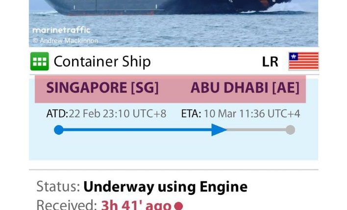 وقالت المصادر إن إسرائيل تلاعبت بهويات السفن في عدد من مواقع الملاحة البحرية وخاصة موقع (MarineTraffic)، حيث عدلت بيانات رحلات السفن وبينها السفينة الاسرائيلية (MSC SKY) ، بأنها قادمة من سنغافورة ومتجهة إلى أبوظبي .