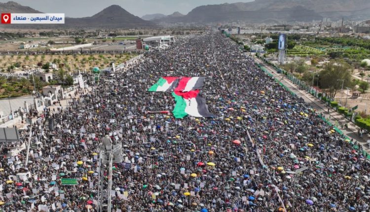 حشودٌ مليونيةٌ رمضانيةٌ مهيبةٌ في ميدان السبعين بالعاصمة صنعاءَ دعمًا لـ غزة
