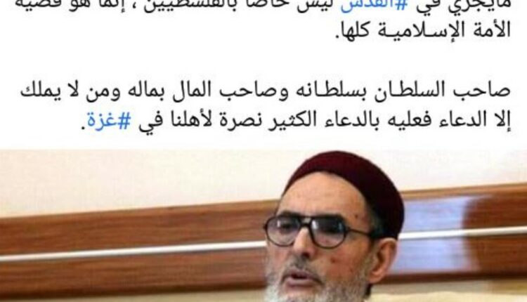 دعا مفتي ليبيا المسلمين جميعا لاقتحام المعابر الحدودية مع الأراضي الفلسطينية المحتلة لإنقاذ الشعب الفلسطيني من جرائم الكيان الصهيوني.