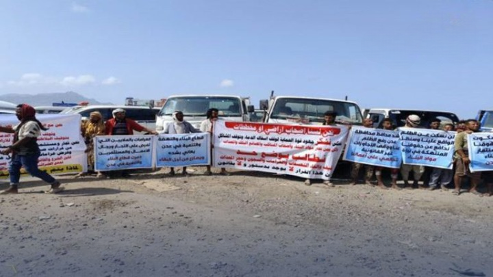 تصاعُدُ احتجاجات تجار مواد البناء ضد قوات الانتقالي