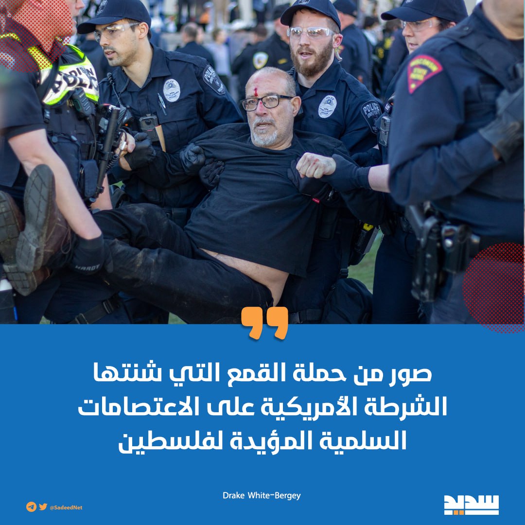 الدماءُ تقطُرُ من الجِباهِ على الوجوه المحتجَّة.. حملةُ قمع وسحل مسعورةٌ تؤيّدُ المجازرَ في غزة للشرطة الأمريكية على الاعتصامات السلمية المؤيدة لـ فلسطين.. شاهدوا حقيقةَ أمريكا بدون قناع