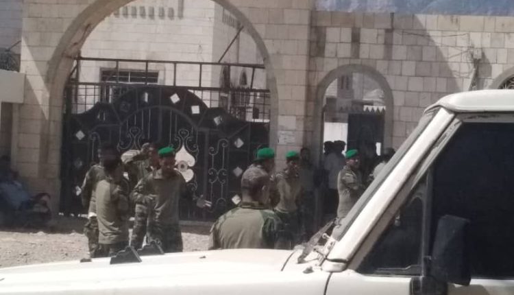 واظهرت مقاطع فيديو تداولها ناشطون على مواقع التواصل الاجتماعي  المئات وهم ينهبون أسلحة واليات عسكرية من المجمع الحكومي ويهتفون برحيل المحافظ الموالي للامارات   رافت الثقلي.