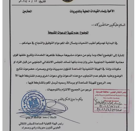 الهبة الحضرمية تطالب عناصرها بالإنسحاب من المجلس الانتقالي والسبب هذه ’’الوثيقة’’ (تفاصيل)