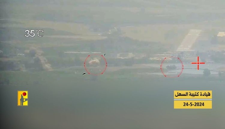 وقال حزب الله، إن مجاهدوه شنوا هجوما جويا بسرب من المسيرات الانقضاضية، على أماكن استقرار وتموضع ‏ضباط وجنود العدو في مقر قيادة كتيبة المدفعية ‌‏بـ”أودم”.