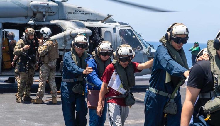 وكانت صحيفة “نيويورك تايمز” الأمريكية قد نقلت سابقاً تصريحات لقبطان السفينة “MV Tutor” كريستيان دومريكي -يوم الاثنين في مانيلا حول الحادثة، وقالت الصحيفة إنه تم نقل القبطان وأفراد الطاقم وجميعهم من الفلبين بعد أن نقلتهم البحرية الأمريكية جوا من السفينة المنكوبة، فيما فُقد أحد افراد الطاقم.