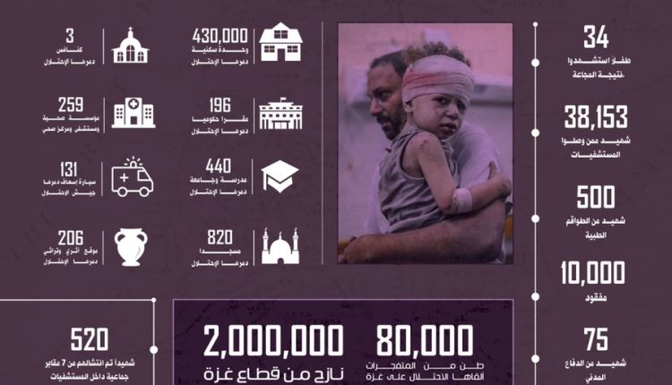 الإبادة مستمرة والأرقام مهولة وصادمة… إحصائية 275 يومًا من العدوان الصهيوني على قطاع غزة On يوليو 8, 2024 337 Share الإبادة مستمرة والأرقام مهولة وصادمة… إحصائية 275 يومًا من العدوان الصهيوني على قطاع غزة 337 Share FacebookTwitterGoogle+ReddItWhatsAppPinterestEmail