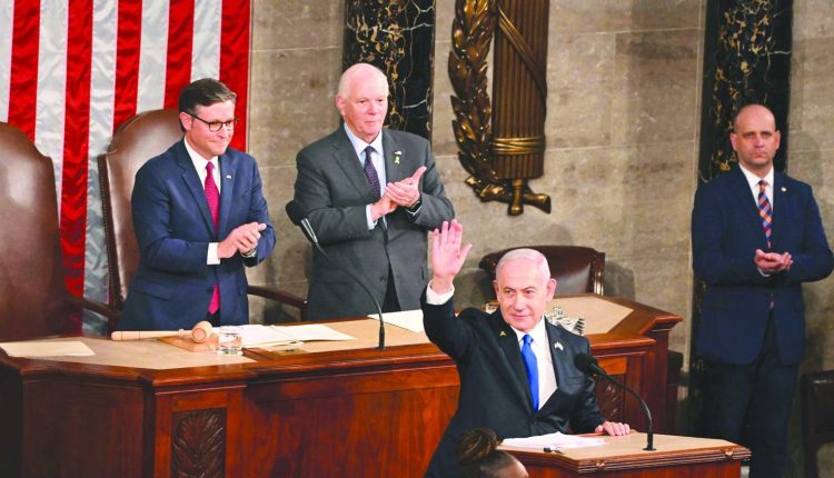 من هنا، اتهم نتنياهو في خطابه المحتجين بأنهم “يؤيدون الشر وقتل الأطفال”، موغلاً في اللعب على العاطفة بأن يقلب الاتهام الذي صار لصيقاً بـ”إسرائيل” – بالأدلة المرئية – لدى قطاع معتبر من الرأي العام الأميركي، مردداً مفردات الذبح والاغتصاب والمزاعم التي تراجع البيت الأبيض نفسه عن تبنيها، وأنكرها لاحقاً من أطلقوها، ليبدو هدف الخطاب، مع تأكيده طيب العلاقة مع الحزبين الديمقراطي والجمهوري بالقدر نفسه، إعادة رسم وتأكيد السردية الإسرائيلية للسابع من أكتوبر، وصرفها سياسياً وفي المعونات والتسليح، باستخدام الورقة الإنسانية والبُعد الديني والمستوى الاستراتيجي.
