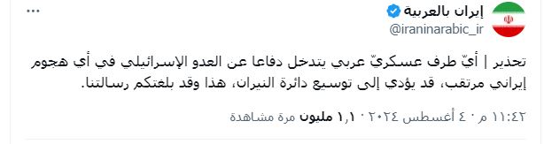نشرت الوكالة الإيرانية الرسمية ، الاثنين، تحذير بالعربية لدول حليفة للاحتلال الإسرائيلي.