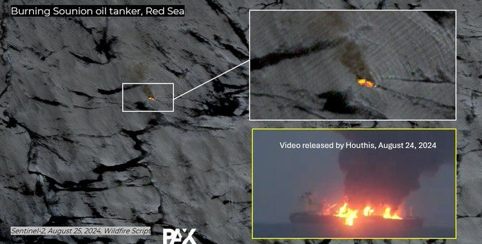 أظهرت صور حديثة ملتقطة عبر الأقمار الصناعية استمرار حرائق سفينة “SOUNION” في البحر الأحمر، والتي استهدفتها القوات المسلحة اليمنية قبل عدة أيام. جاء الاستهداف بعد أن خرقت الشركة المالكة للسفينة قرار حظر الملاحة إلى موانئ كيان الاحتلال الإسرائيلي.