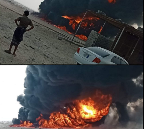 انفجارُ مقطورة غاز يُشعِلُ حريقاً هائلاً في شبوة