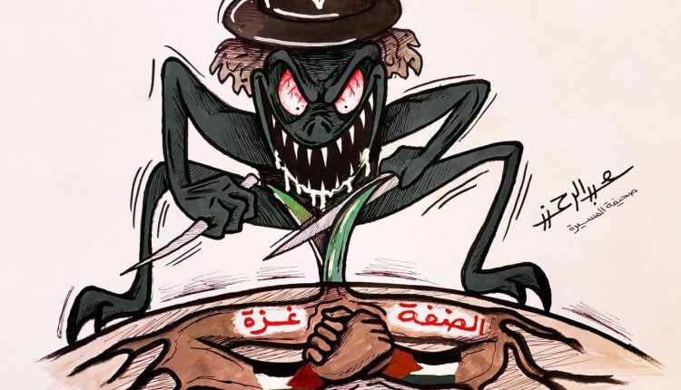 كاريكاتير يُجْلِي الوَحدةَ والتعاضُدَ بين المجاهدين الفلسطينيين في غزة والضفة الغربية