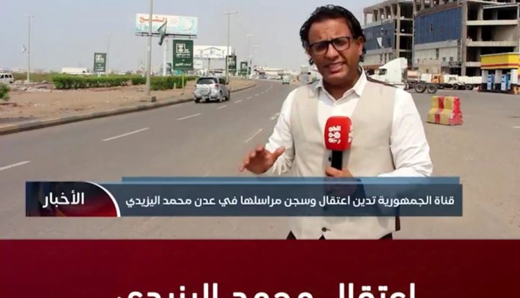 وأدانت قناة “الجمهورية ” التابعة لطارق ، استمرار البحث الجنائي بعدن في اعتقال مراسلها محمد اليزيدي ، واصفة ذلك بالعمل غير المبرر ولا القانوني .