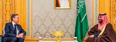 والتقى وزير الخارجية الأمريكي انتوني بلينكن  بولي العهد السعودية في محطته  الثانية لجولته الحادية عشر منذ بدء طوفان الأقصى.