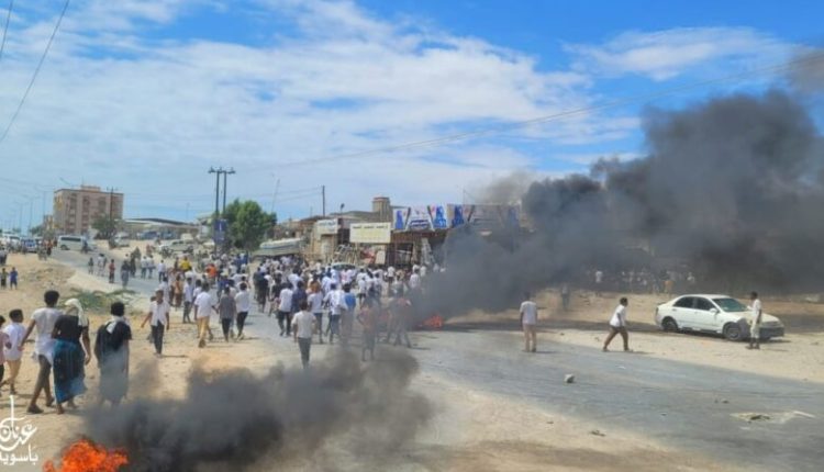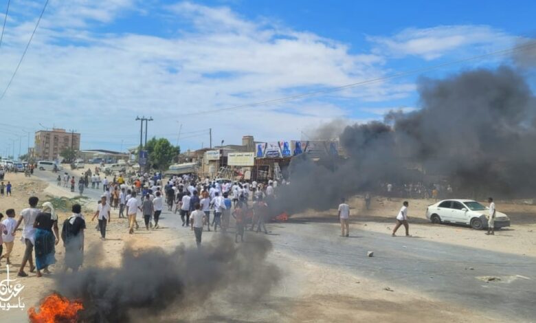 ويقوم انصار الانتقالي في حضرموت بقطع الشوارع واحراق الإطارات وتمزيق صور بن ماضي.