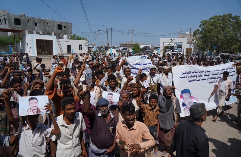 نددت تظاهرة شعبية في مدينة المخا الساحلية بعمليات القمع والاعتقالات خارج إطار القانون التي تنفذها قوات طارق صالح .