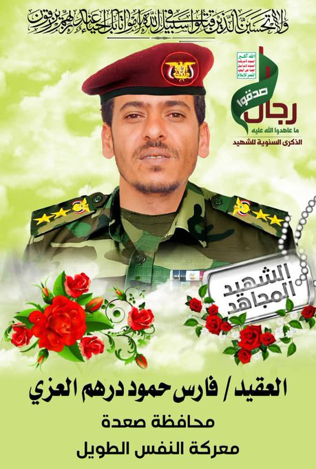 وقال العزي في تغريدة ارفقها بأن الشهيد فارس العزي كان محتجز لدى التحالف وتم استرجاعه مؤخرا.