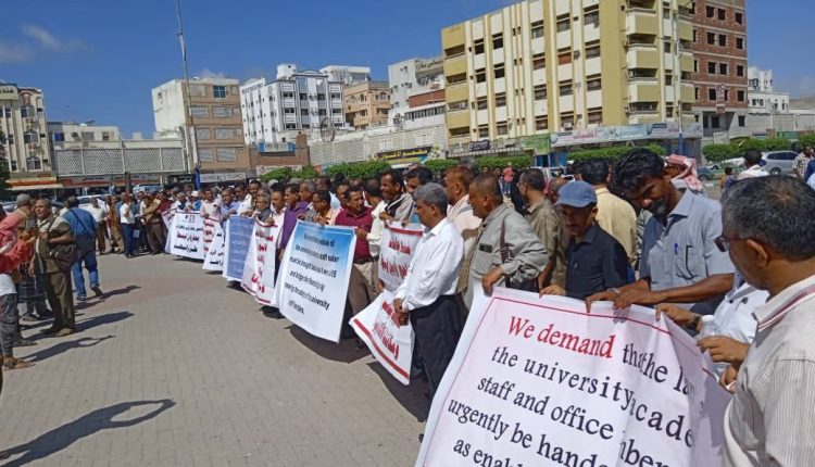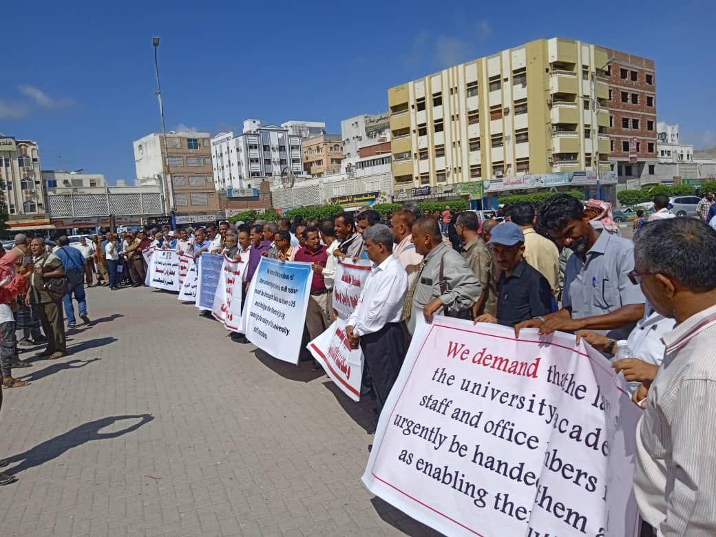 وأعلنت النقابة العامة للتعليم الفني والتدريب المهني، في مدينة عدن، الخميس، استمرارها في الاضراب الشامل حتى الاستجابة لمطالبها المشروعة، والتي تأتي في مقدمتها صرف المرتبات ومعالجة الإنهيار الاقتصادي.