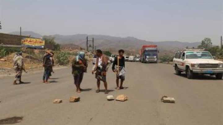 قطع مسلحون في الفصائل التابعة للتحالف أحد أهم الطرق الرئيسية بمحافظة تعز احتجاجا على انقطاع مرتباتهم من قبل الحكومة.