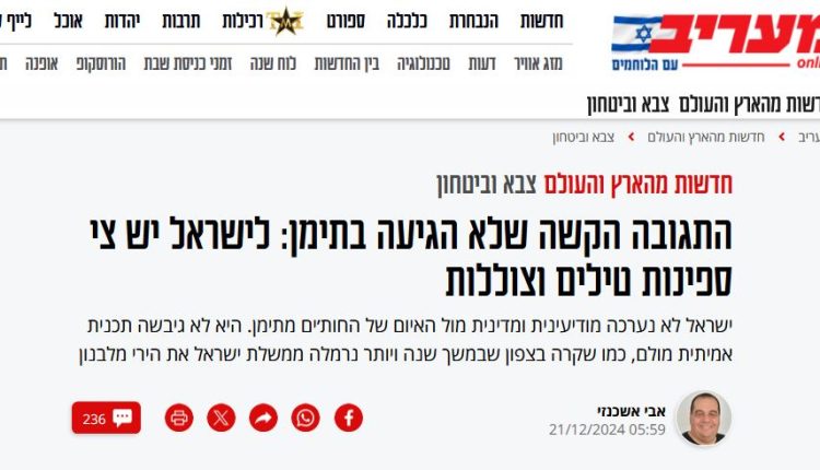 يقول تقرير الصحيفة العبرية إن العملية العسكرية اليمنية الأخيرة أثبتت أكثر من أي شيء آخر أن إسرائيل لا تعرف كيف تواجه اليمن”.