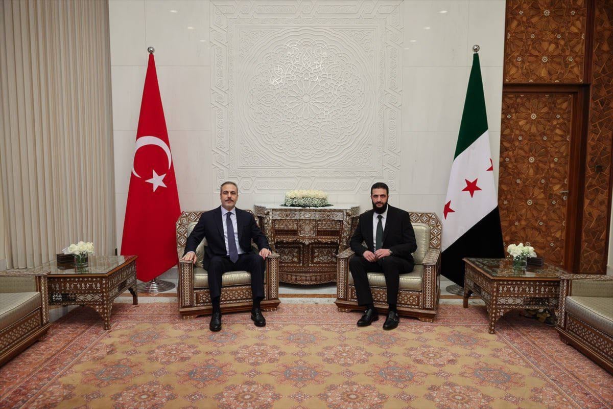 استقبل رئيس إدارة العمليات العسكرية في سوريا، أحمد الشرع (الجولاني)، وزير الخارجية التركي، هاكان فيدان، في قصر الشعب في العاصمة السورية دمشق.