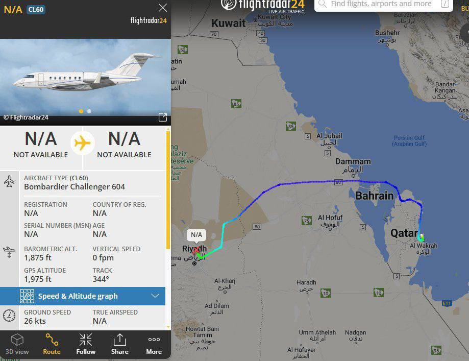 وكشفت وسائل الاعلام الإسرائيلية عن مسار الرحلة عبر مواقع تتبع حركة الطيران والتي بينت وصول الطائرة الإسرائيلية الى الرياض .