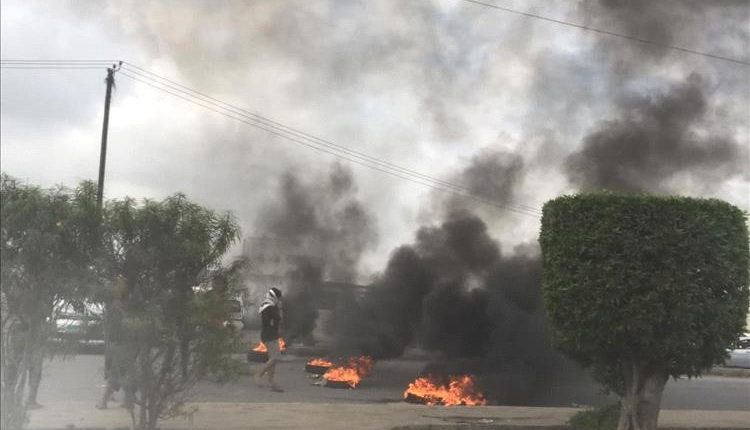 وأضرم المواطنين النار في الإطارات التالفة ووضع الاحجار بعدد من الشوارع في منطقتي الشيخ عثمان والمنصورة بما فيها شارع عدن – تعز .