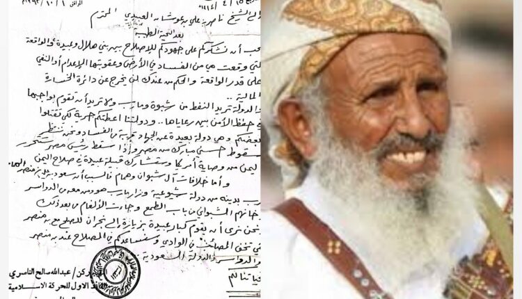 كشفت وثيقة سرية نشرها موقع “الجنوب اليوم” عن ارتباط الشيخ ناصر بن عوشان العبيدي بمخططات خارجية تهدف لزعزعة الاستقرار في كل من مصر واليمن، وذلك في إطار أجندة موسعة لحركة الإخوان المسلمين.